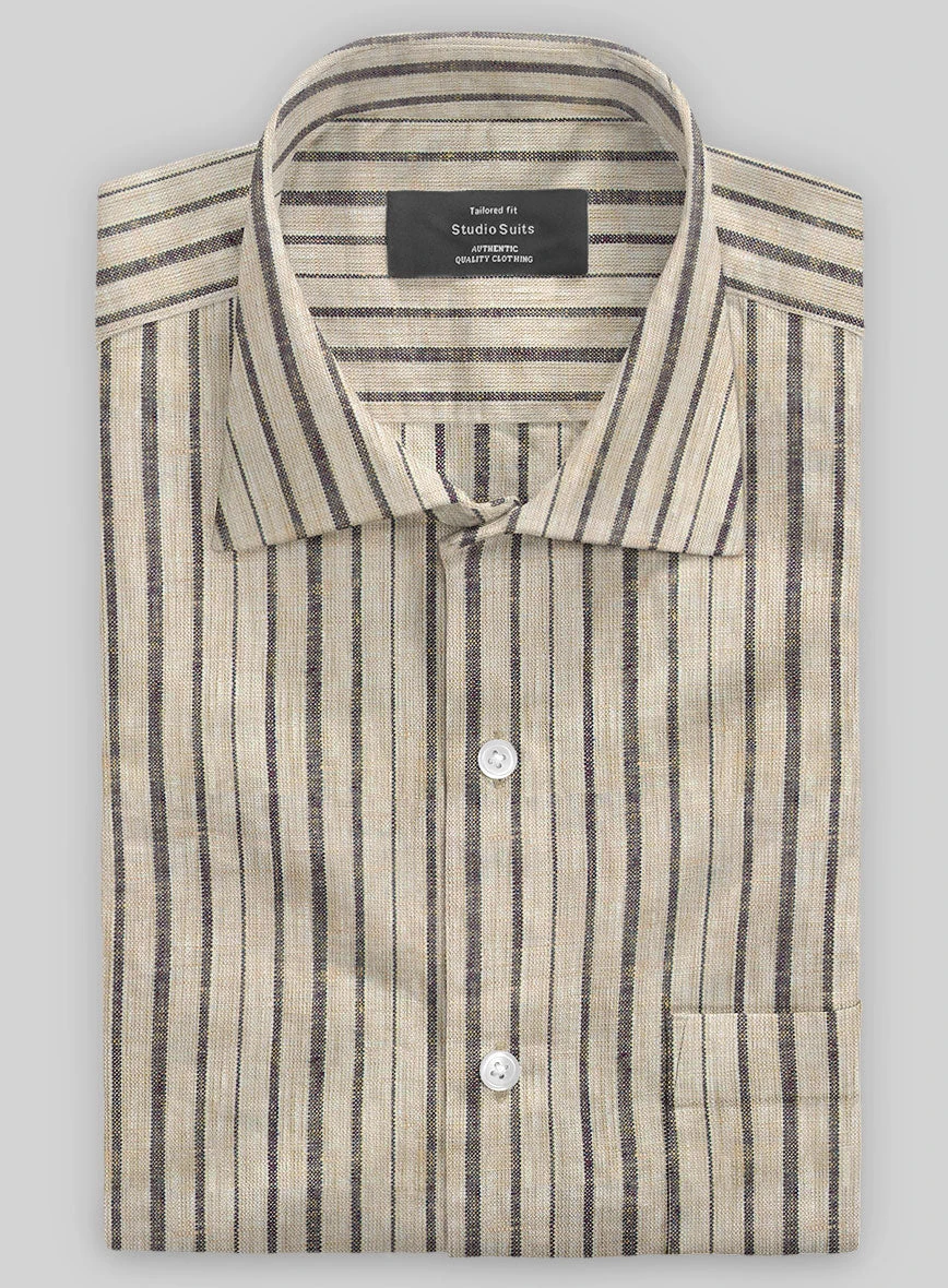Stay on top of fashion trends with our Beige Stripe Linen Shirt, designed to offer both style and comfort. This soothing beige shirt is perfect for casual evening outings and brunches.