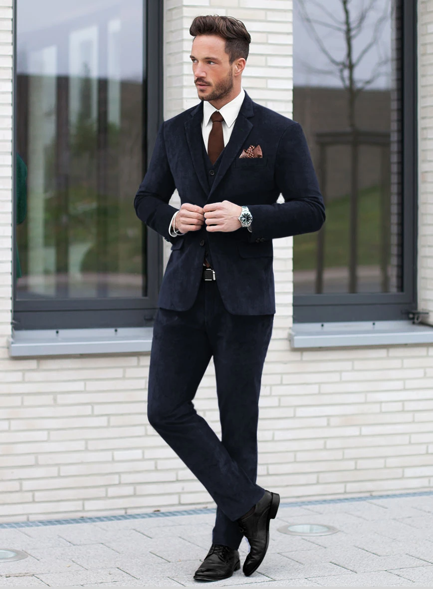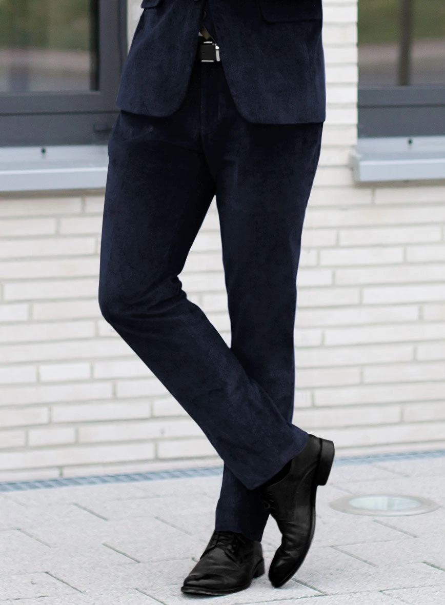 If you are among the fashion daring or just looking for something totally new, opt for our Blue Velvet Jacket. Crafted from cotton, the jacket features a luxuriously soft feel and splendid shade that is bold enough to make you stand out from the rest. To add more elegance and sophistication team it with a white shirt, black tie and black oxford shoes.