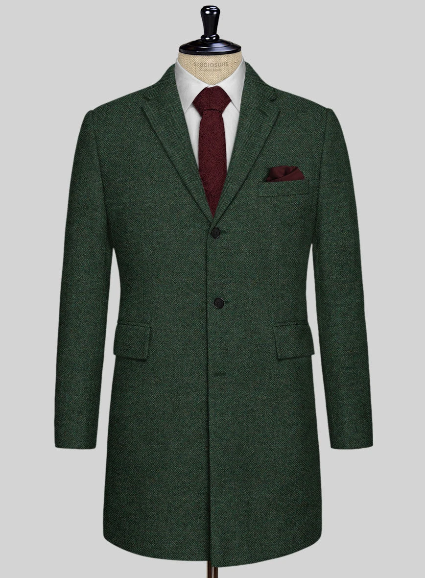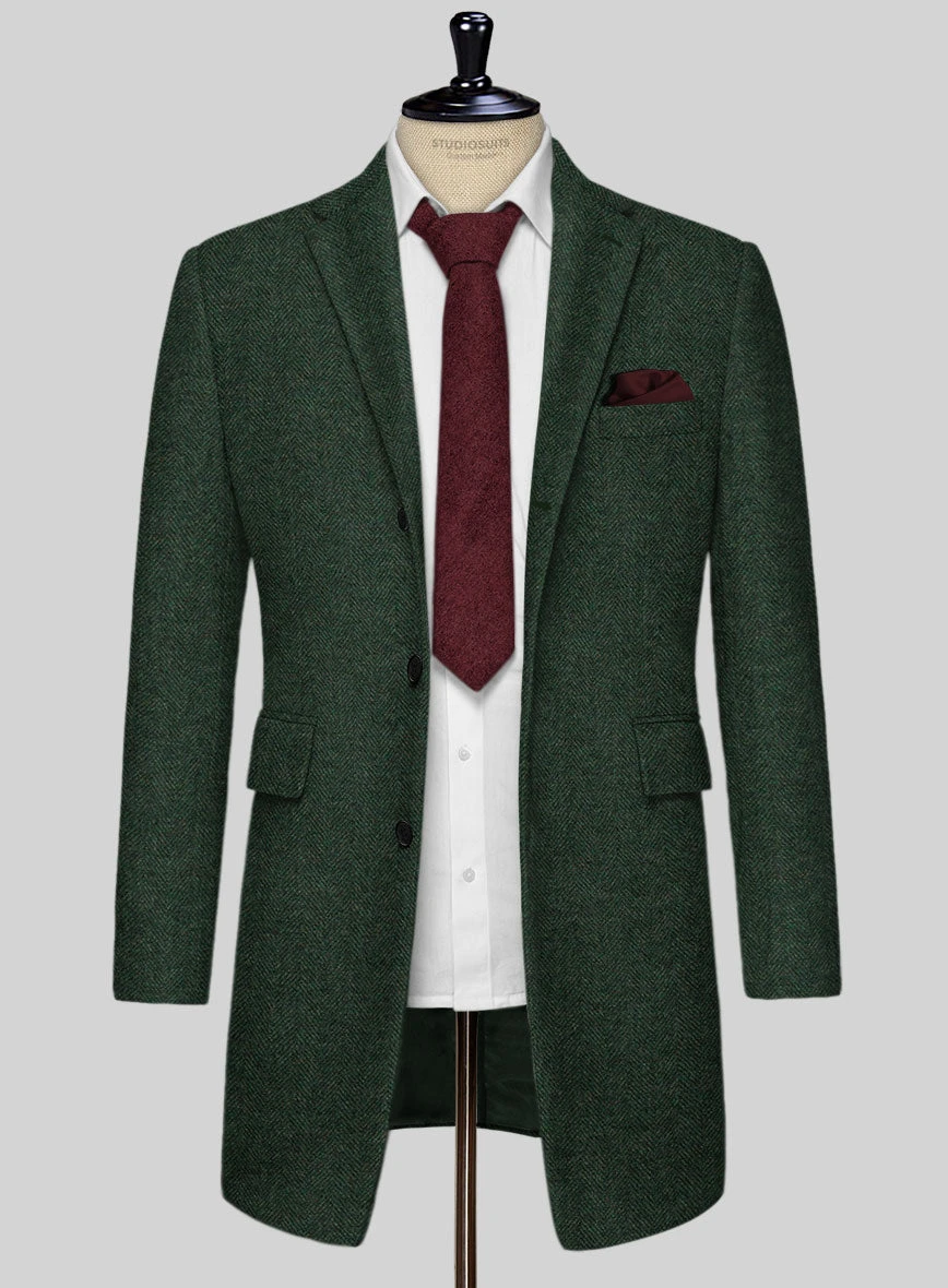 Make an entrance in our Bottle Green Herringbone Tweed Overcoat that isn’t afraid to let its true colors fly. Crafted from wool, the overcoat features a herringbone pattern that develops a bit of texture and mystique, while its bottle green color places itself in the super suave category, making it ideal for a distinctive appearance.