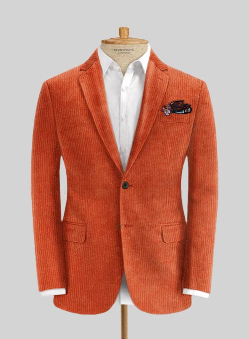 Spruce up an authentic statement piece by wearing our Burnt Orange Corduroy Jacket that improves sophisticated attire by aligning premium and elegant aspects. Convey a vibrant aura with our jacket, crafted from cotton fabric that offers a thick, rich and ultimate softness with a refreshing texture over an orange shade that endows a superb character. Finally, reaching the height of elegance and sophistication with an intricate tailoring result in an orange jacket, an ideal selection to show up in unique situations and notable moments.