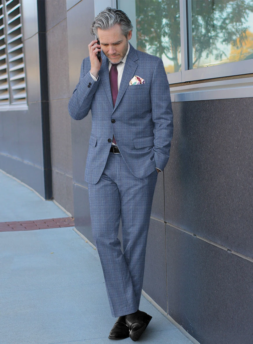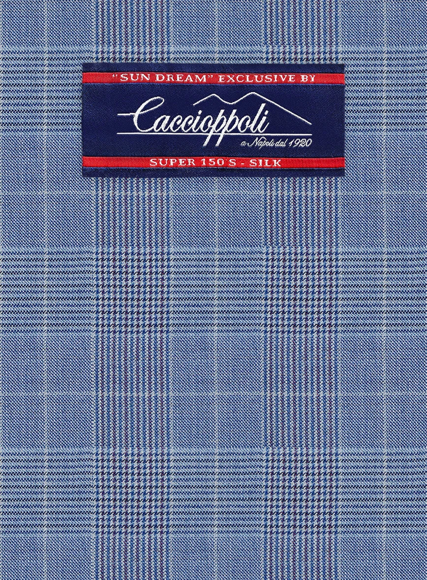 There are times that call for less flamboyance and more decorum. At those times, our Caccioppoli Sun Dream Lisarn Blue Wool Silk Suit enters the scene. Made from a wool blend with silk, it features an icy blue tone punctuated by classic plaid weaves, creating variations that give the suit a more relaxed look. Whether you’re conquering the office workday with class, enjoying the role of a wedding guest, or embracing style at an outdoor event, this suit is perfect for any occasion.