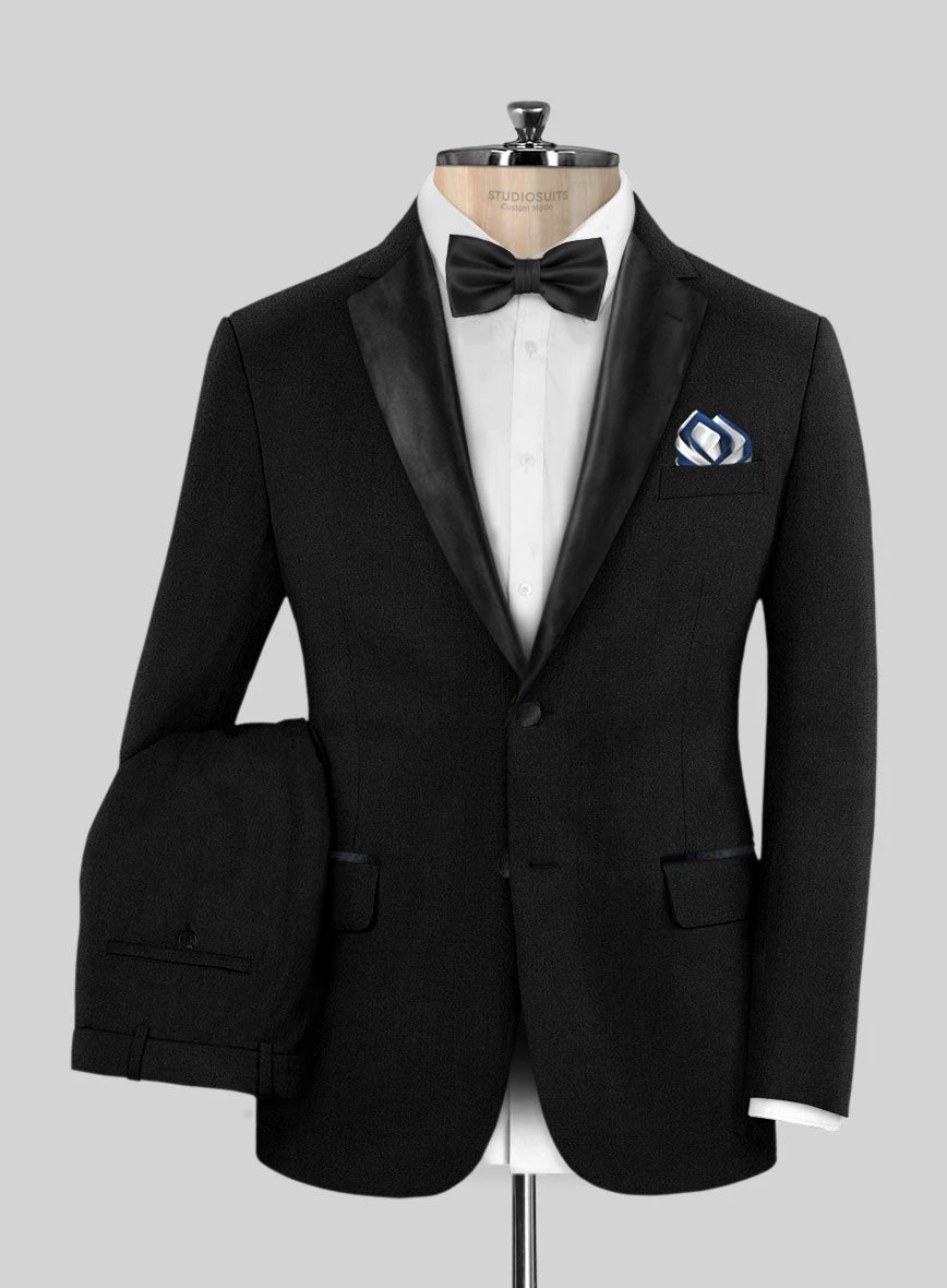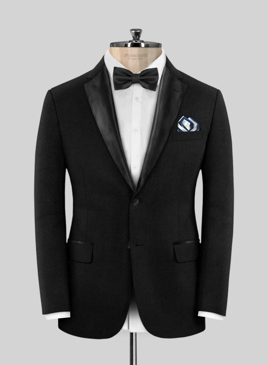 The Deep Black Tuxedo Suit commands the spotlight with its sharp razor-like cut and dark black color that’s deeper than most standard black tuxedo suits. This tuxedo suit is crafted from pure wool and features an exceptional quality all-seasonal fabric. However, due to its formal nature, it’s best suited for evening events with a black tie dress code, such as weddings or corporate events.