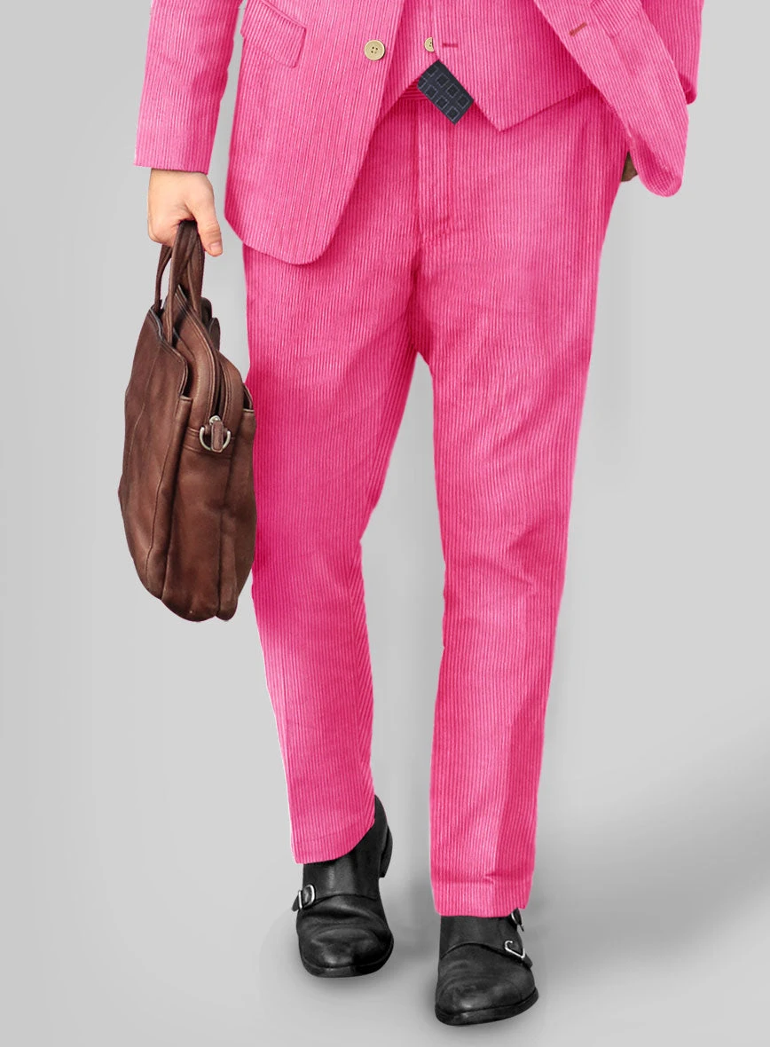 Entice a unique interest by donning our Fusica Pink Corduroy Suit that brews luxurious overtones. First, admire the convenient elegance of our suit, crafted from 100% cotton fabric that features a thick yet intensely smooth, light, and supple arresting stripes texture over a pink shade that delivers your originality bling. Then, mesmerize the gathering with an impeccably tailored pink suit that ensures ultimate comfort for flaunting your distinctive personality without the hassle of showing up at exotic venues and premium events.