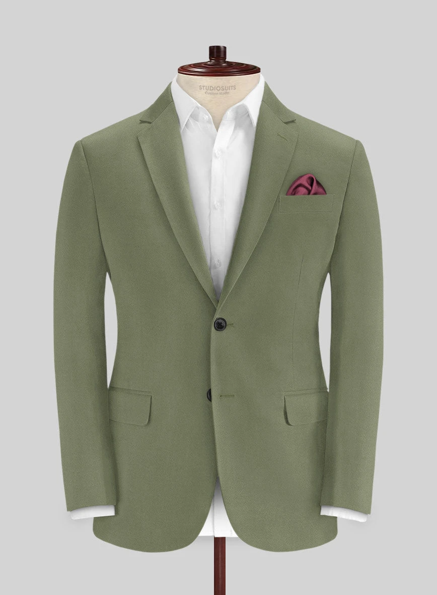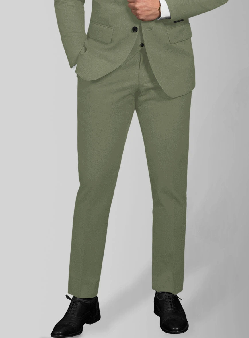 Spruce up your style game with our striking Green Feather Cotton Canvas Stretch suit. Crafted from cotton lycra, the stretch suit is a modern innovation in classic menswear that adds comfort and functionality to a garment, also lasting the test of time. Finish it with a matching waistcoat, white shirt, olive tie and tanned oxford shoes.