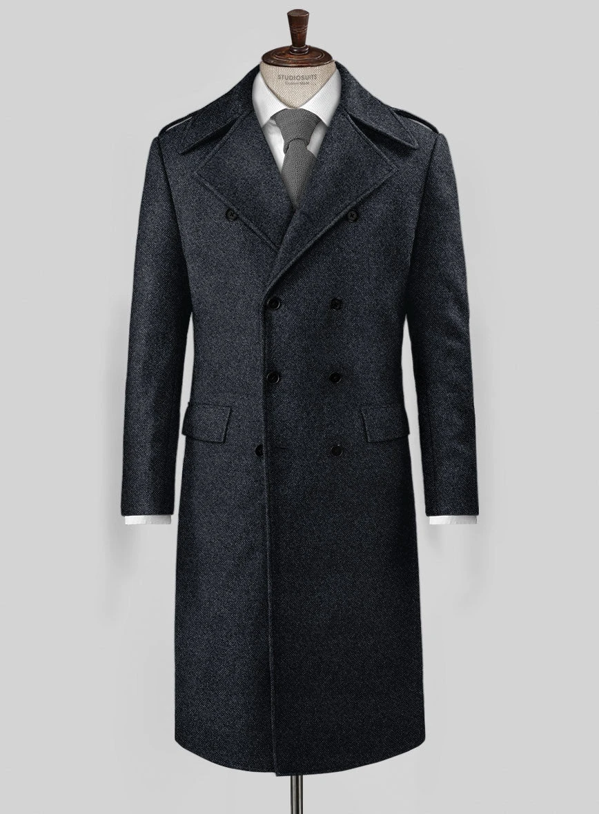 Step up your style this colder season with our Highlander Heavy Blue Bedford Tweed GQ Overcoat. Carefully crafted from premium wool fabric, this coat is more than just fashionable – it’s a reliable defense against chilly winds, keeping you both stylish and cozy. The classic blue color exudes elegance, and the unique pattern blends traditional tailoring with modern flair. Whether it’s a formal event or a business meeting, this designer coat stands as your ultimate ally.
