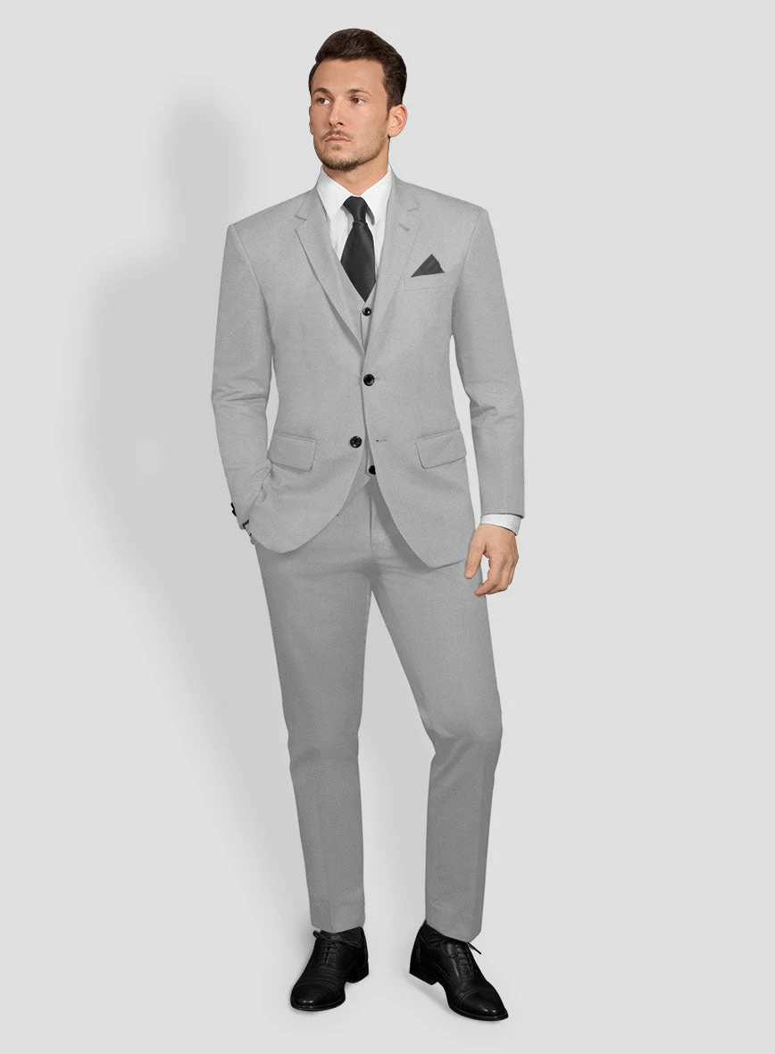 Slip into the signature armory by wearing our Ice Gray Cotton Power Stretch Chino Suit. Primarily, cut from a rich blend of cotton and lycra fabric that grants a slick, brisk nature while bringing an airy feeling with breathable elements to keep you dry in humid conditions, while the cloth is covered with a solid gray finish. Lastly, define a suave versatility with flawless tailoring that infuses a dose of timeless glamour with sleek figures to make a significant impact while arriving at crucial moments.
