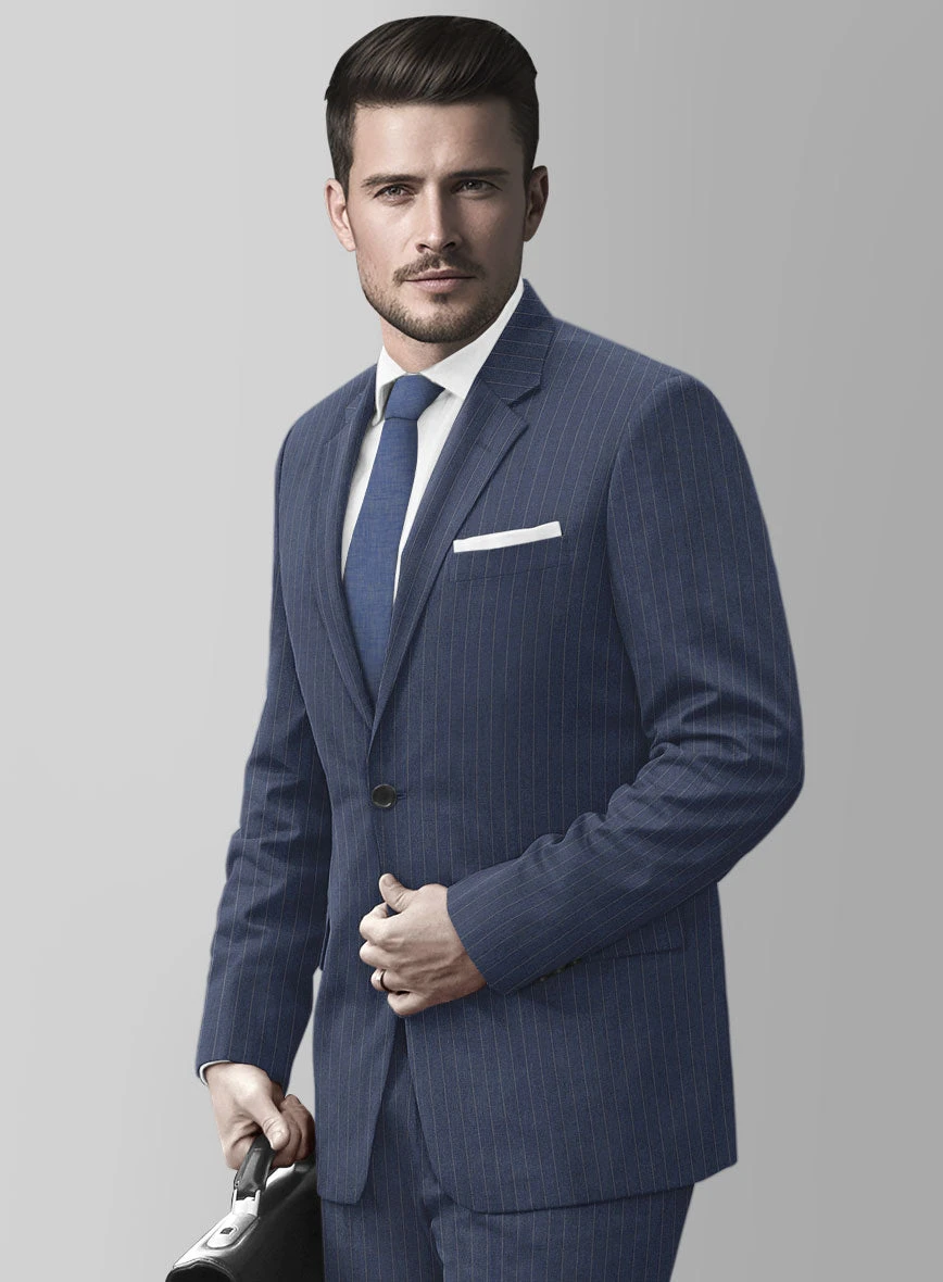 Revamp your style and let your inner fashion maverick shine with our Ink Blue Pinstripe Jacket. Crafted from a wool blend fabric that not only exudes style but also ensures exceptional comfort. The subtle pinstripes on the jacket add finesse and playfulness to your look, paying homage to classic menswear heritage while infusing a touch of modern charm. Its ink-blue hue makes a statement while maintaining a sense of refinement. Whether you’re preparing for a special event or aiming to leave an unforgettable mark at the office, this jacket will undoubtedly be your top choice.