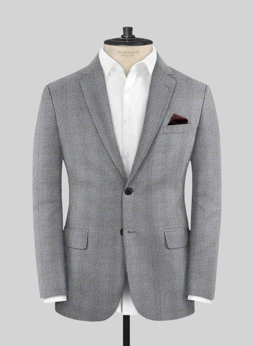 Leave a memorable and unforgettable impression as you grace every room with our Italian Burta Gray Glen Flannel Suit. Crafted from pure wool fabric, this suit showcases a serene plaid design in a splendid gray hue with a blue and black pattern, bestowing an undeniable sense of refinement. The soft, luxurious fabric ensures both comfort and a freshly styled appearance. Whether attending social gatherings or aiming to make a powerful impact during an important interview, this exceptional suit will be your faithful and stylish companion.
