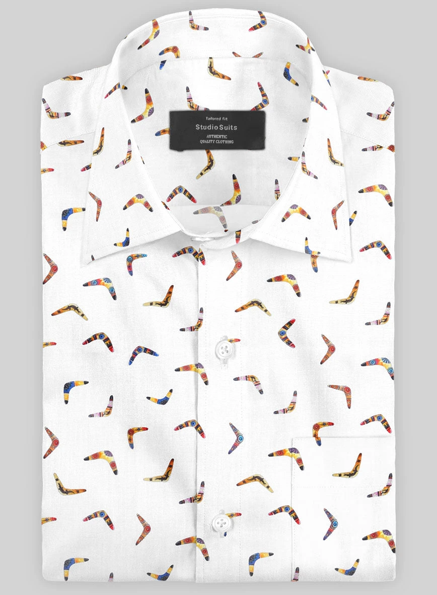 Add a touch of wistfulness to your outfit with our Italian Cotton Bomerang Shirt, and be sure to turn heads this holiday season. Crafted from cotton, the shirt offers an excellent design patterned with a bomerang that you can flaunt at a casual get-together or on the playground.