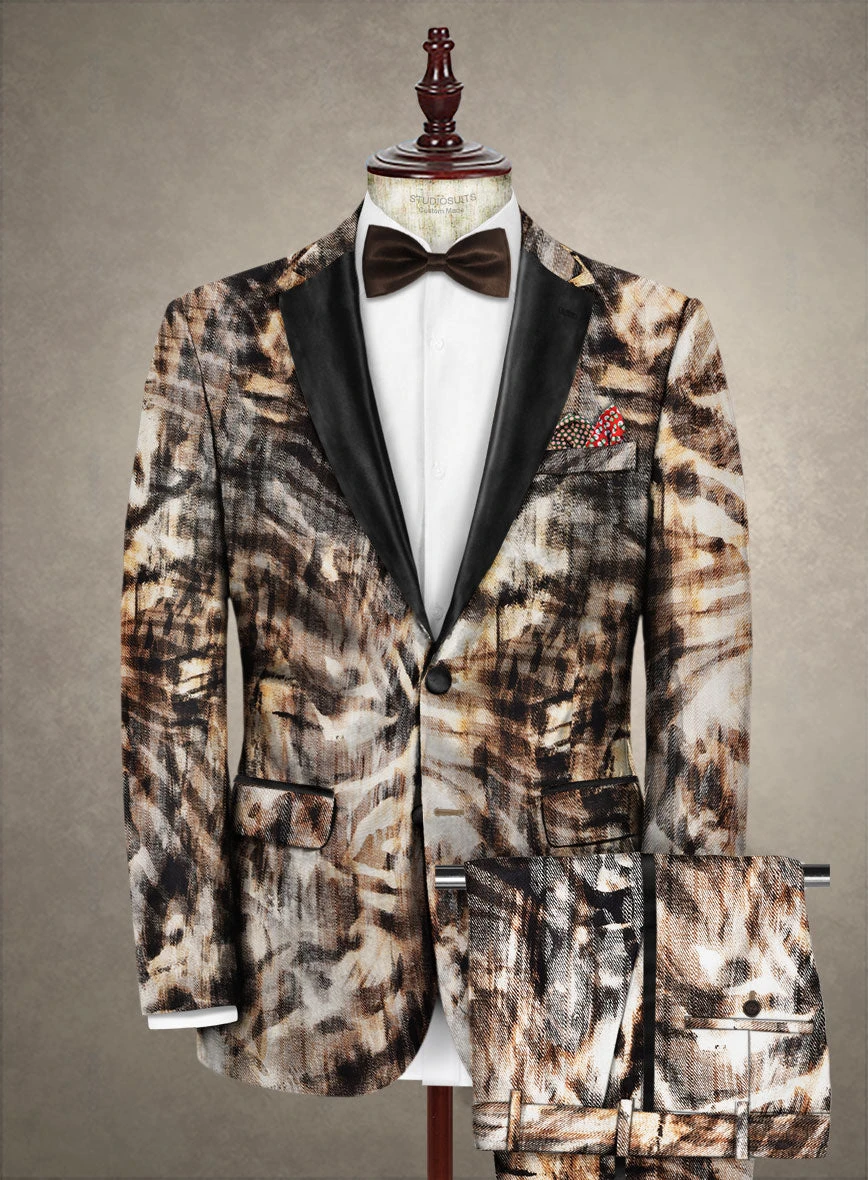 Dive into the realm of sartorial style with our Italian Cotton Stretch Elisa Tuxedo Suit- a daring yet refined masterpiece that transcends conventional boundaries. Meticulously crafted from a blend of luxurious cotton and Lycra, its fusion fabric ensures not only a plush feel against your skin but also allows for unrestricted movement, seamlessly blending comfort with sophistication. Let the splash pattern serve as a visual symphony, resonating with your personality, and make every moment a canvas for self-expression. Whether you’re commanding attention on the red carpet, redefining norms at a formal affair, or making a statement at a black-tie event, this suit stands as your accomplice.