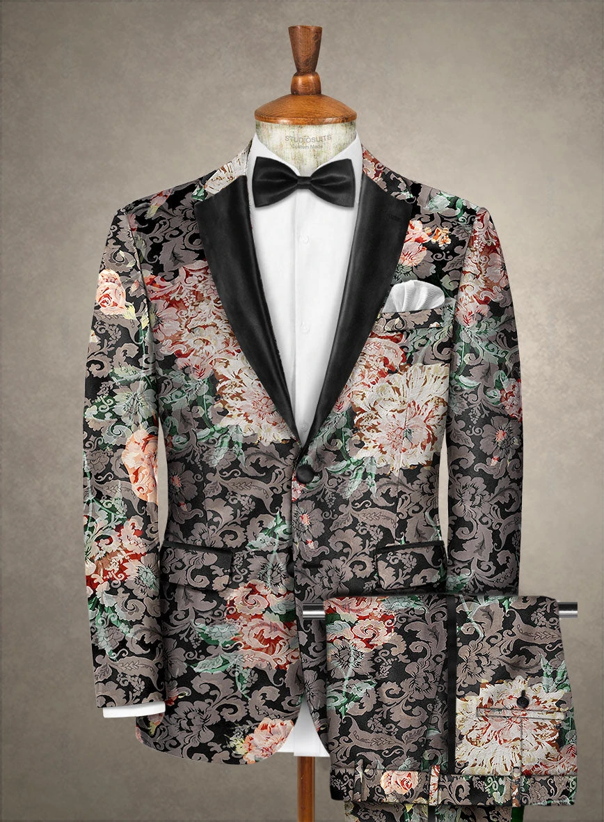 Step into this whimsical realm where the iconic tuxedo transcends into a kaleidoscopic burst of our Italian Cotton Stretch Valeria Tuxedo Suit— a fusion of audacity and refinement. Meticulously tailored from a cotton blend, it grants the liberty to move gracefully and effortlessly. A vibrant tapestry of multihued florals cascading across black fabric, bringing a garden of boldness to your ensemble. Whether you’re owning the red carpet, black-tie event or redefining the rules at a formal affair, this piece is your accomplice in making a statement that’s uniquely, unmistakably you.