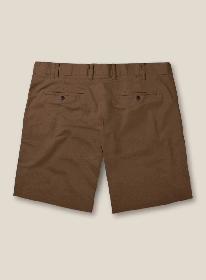 Experience unparalleled comfort and style with our Italian Hickory Brown Cotton Stretch Shorts. Crafted from cotton infused with Lycra, these shorts keep you cool and tranquil all day. The solid pattern and rich hickory brown color add timeless elegance, making them a versatile wardrobe essential. Whether on a beach or in the city, enjoy unmatched ease and relaxation.
