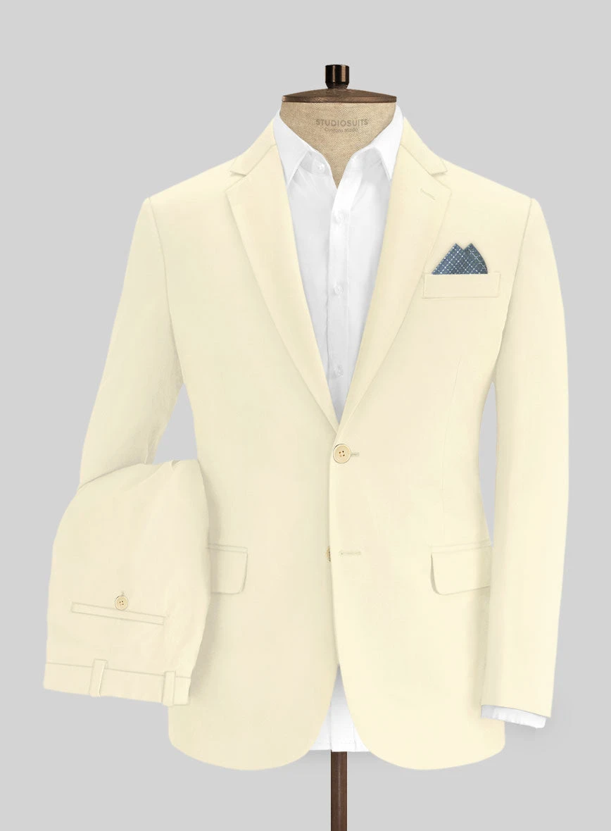 Unleash your style and personality with our Italian Ivory Cotton Stretch Suit, designed to make a statement wherever you go. Meticulously crafted from a premium blend of cotton and lycra, this suit showcases a solid ivory hue that exudes sophistication and charm, perfect for any upscale event. With this suit, you’ll undoubtedly attract attention and stand out from the crowd.