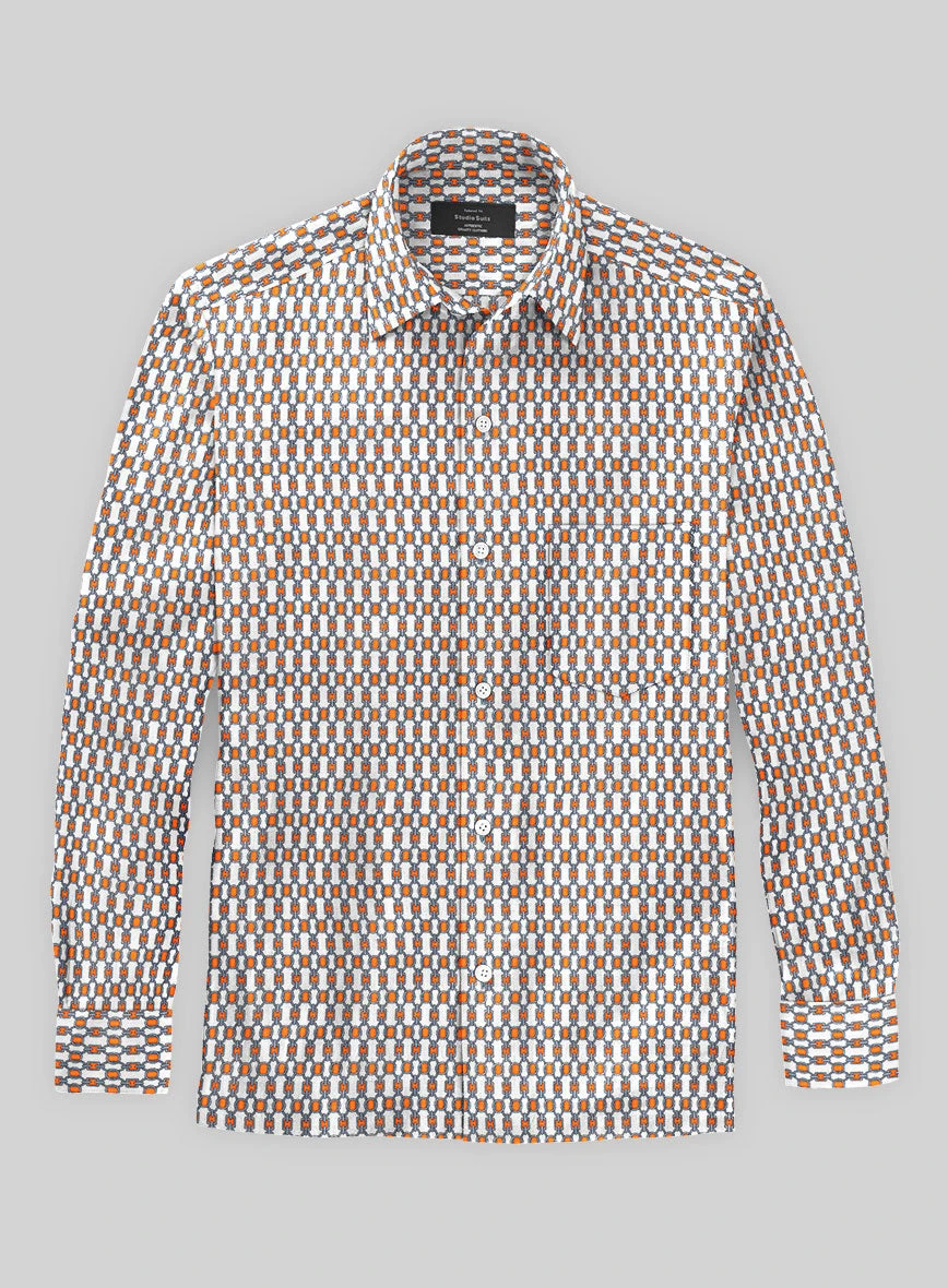 Shirts like our Italian Linen Cormen Shirt are party saviors! Tailored from breezy linen material for endless comfort, this shirt showcases an interconnecting orange chain print on white fabric that exudes fun and chic vibes, making it a favorite pick.