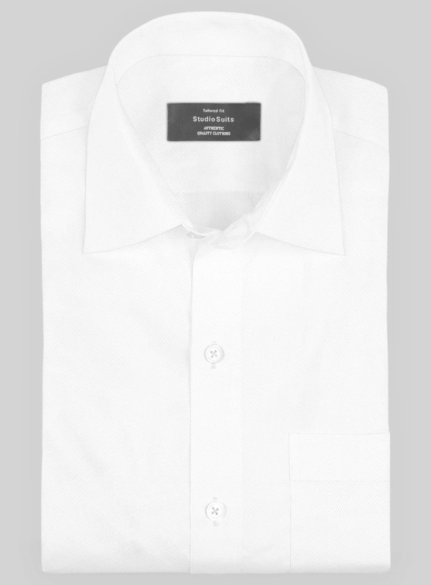Make a luxurious asset fruitful with our Italian Lombardo Basket White Shirt that will offer a unique look to sparkle. Tailored with pure cotton fabric, our shirt has a fancy basket weave texture which will add a solid perfection to your attire. in addition, the fabric feels super soft and light on your skin with a white shade offering a cool and refreshing style for your big event.