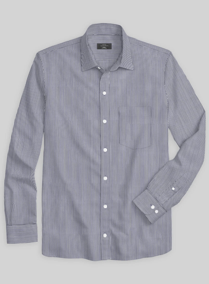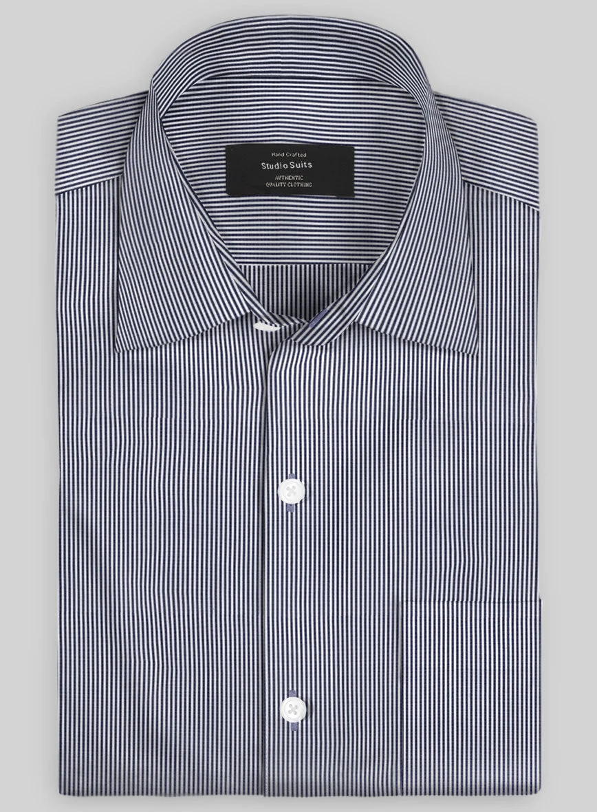 Align the sartorial interests by adding our Italian Lombardo Candy Navy Blue Stripes Shirt. Meanwhile, the shirt is crafted from a pure cotton fabric, which serves a light, delicate, breezy and evenly smooth touch with a striped pattern over the blue tone.