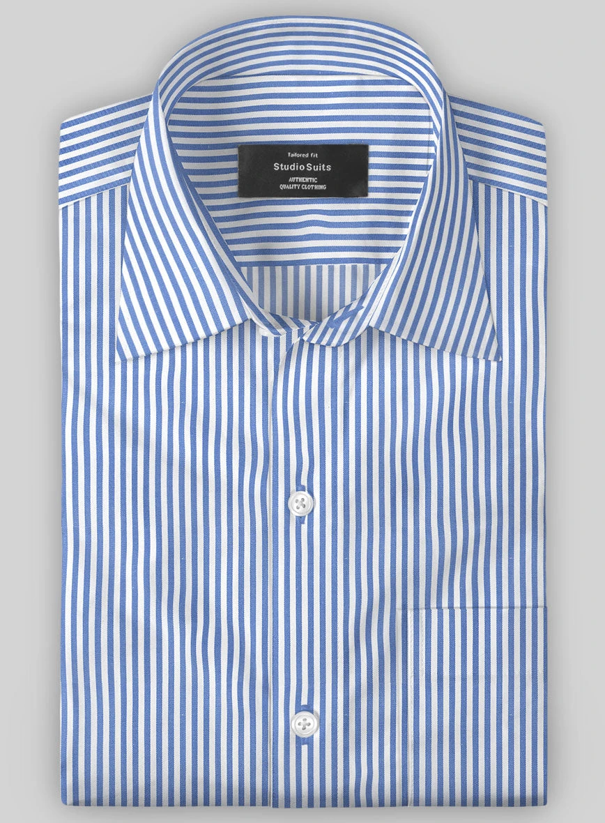 Get ready to steal the show in our Italian Lombardo Celestial Blue Stripes Shirt. This stunning shirt is adorned with a celestial blue stripe pattern that adds a trendy and stylish touch to your look. Our shirt is crafted from breathable fabric and keeps you comfortable and looking sharp all day long.