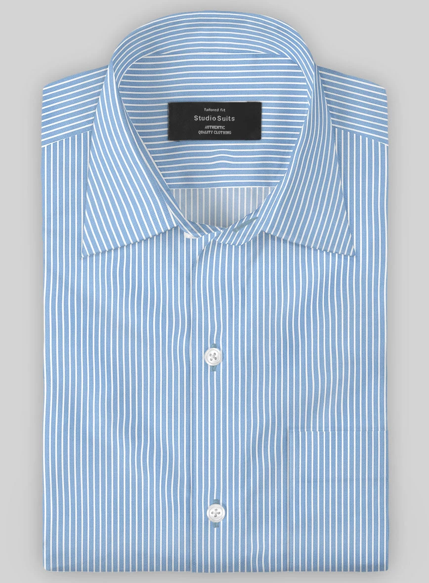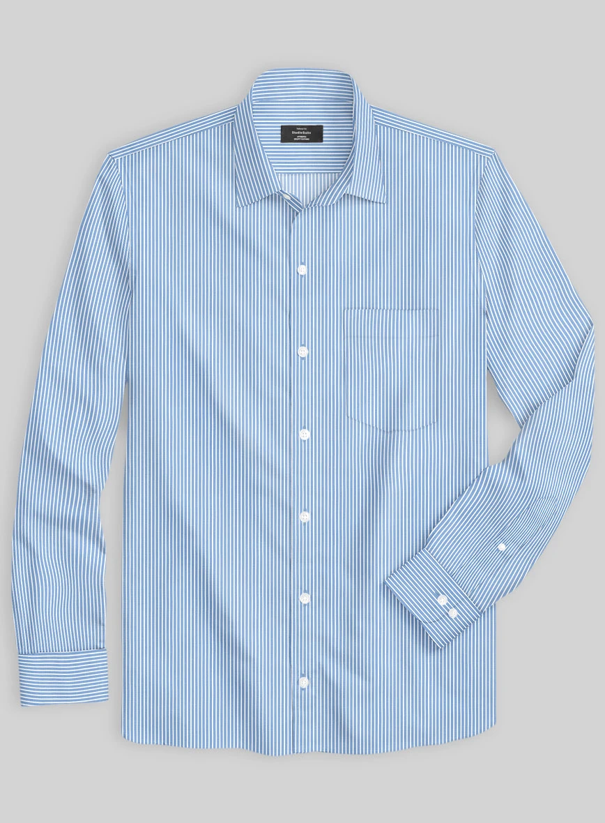 Uphold a visually distinguished class by donning our Italian Lombardo Ice Blue Stripes Shirt. However, the shirt is made with pure cotton fabric, which serves fresh, pleasant and breathable features to keep you cool and dry in warmer temperatures. Most significantly, the tailoring exudes an enduring appeal that applies a stunning fit and a formality.
