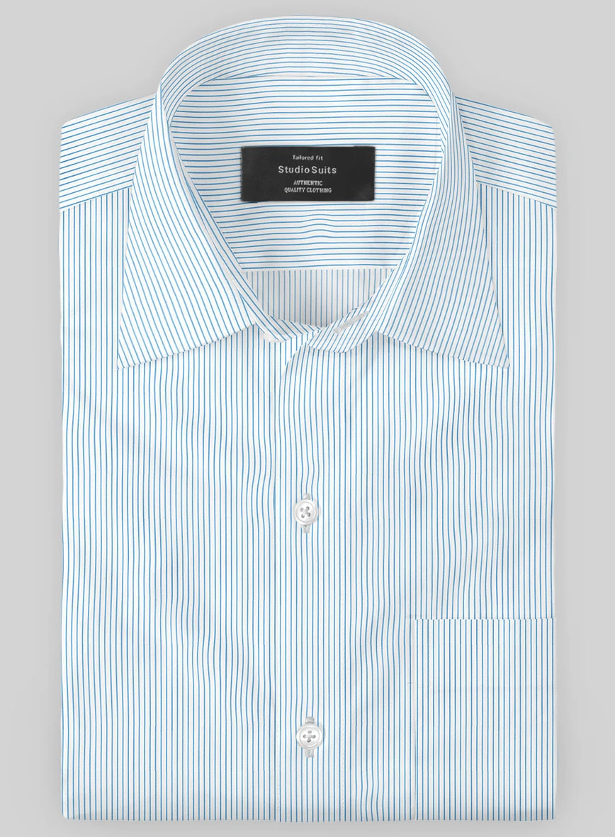Spruce up the noble subtlety by donning our Italian Lombardo Lily Blue Pencil Stripes Shirt. In addition, the shirt is crafted from a pure cotton fabric, which delivers a brisk, sheer and airy feel with a striped pattern over the white tone.