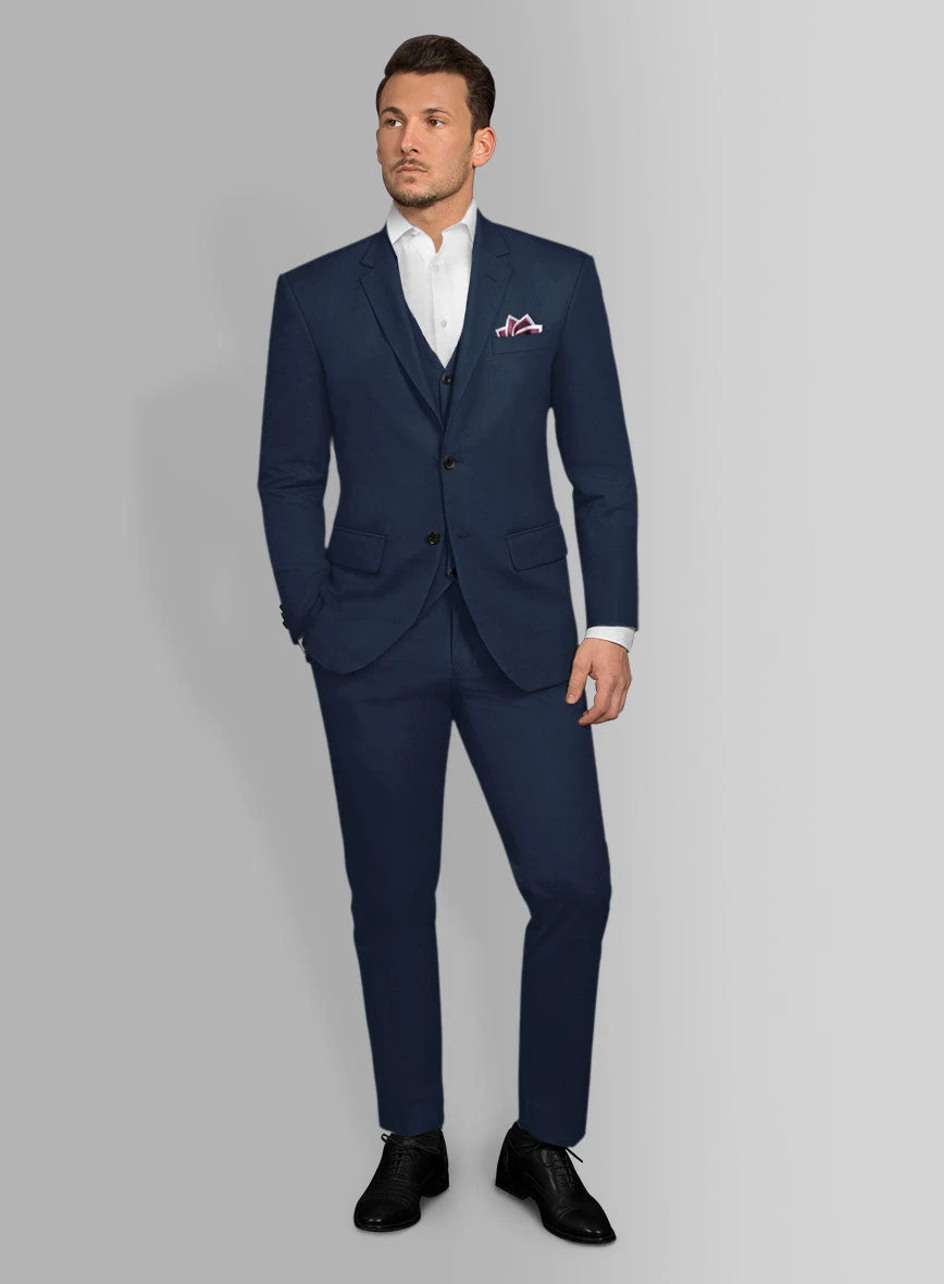 A solid suit makes you look smart, handsome, and like you have got the world by nuts. Crafted from cotton lycra blend, our Italian Navy Blue Cotton Stretch Suit offers comfort, breathability, mobility and features a nice navy blue hue which can be ultimate eyecatching summer wear.