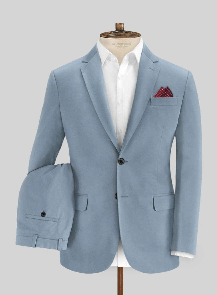 Show off your impeccable fashion sense with our Italian Powder Blue Cotton Stretch Suit. Made from a comfortable blend of cotton and lycra, it exudes urban sophistication with its sleek texture. This solid-patterned suit, available in a delicate powder blue tone, is perfect for any warm-weather occasion. Choose this suit to make a stunning impression at your next event!