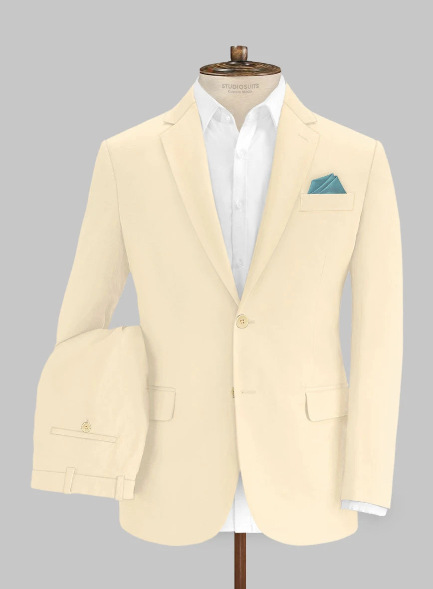 Step out in style with our Italian Sandy Beach Cotton Stretch Suit, perfect for a sophisticated look that transcends any season. Meticulously crafted from a high-quality blend of cotton and lycra, this suit features a soothing beige hue that exudes elegance and effortlessly embodies a refined vibe for those seeking confidence in any setting.