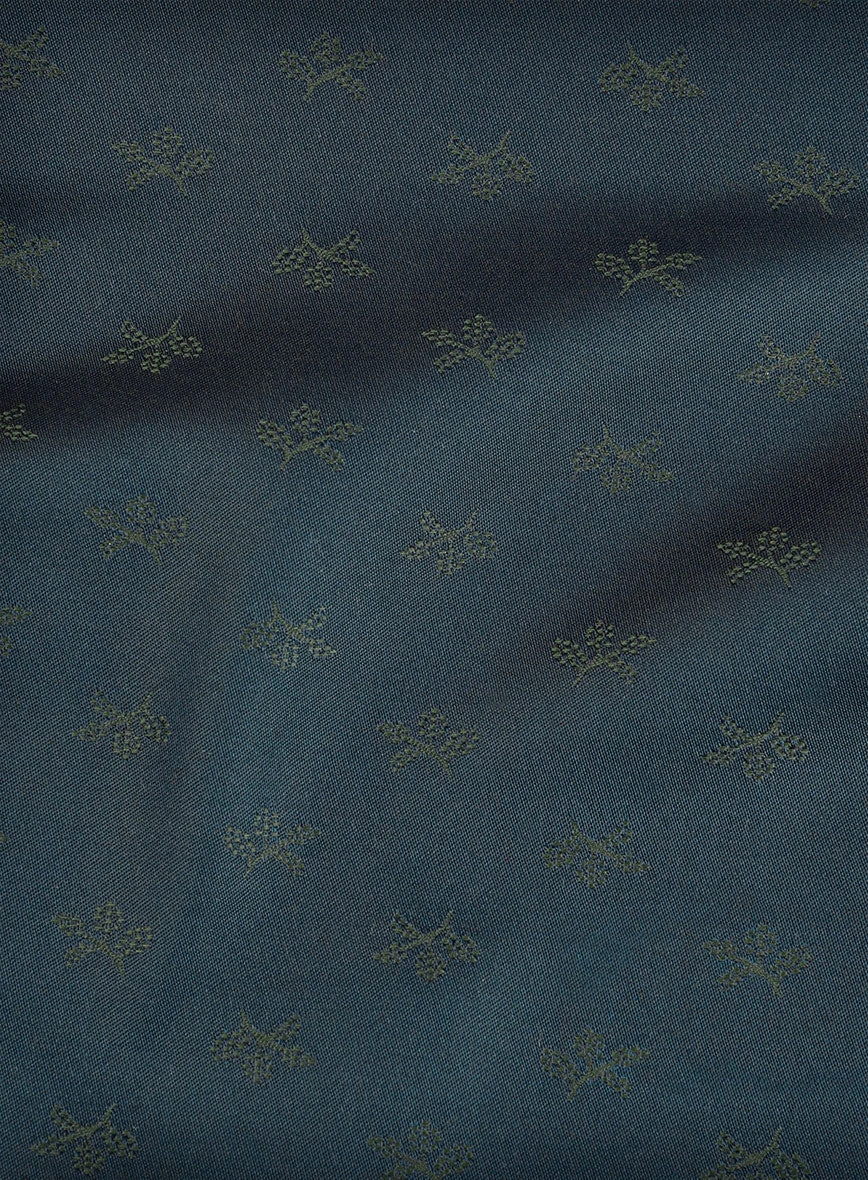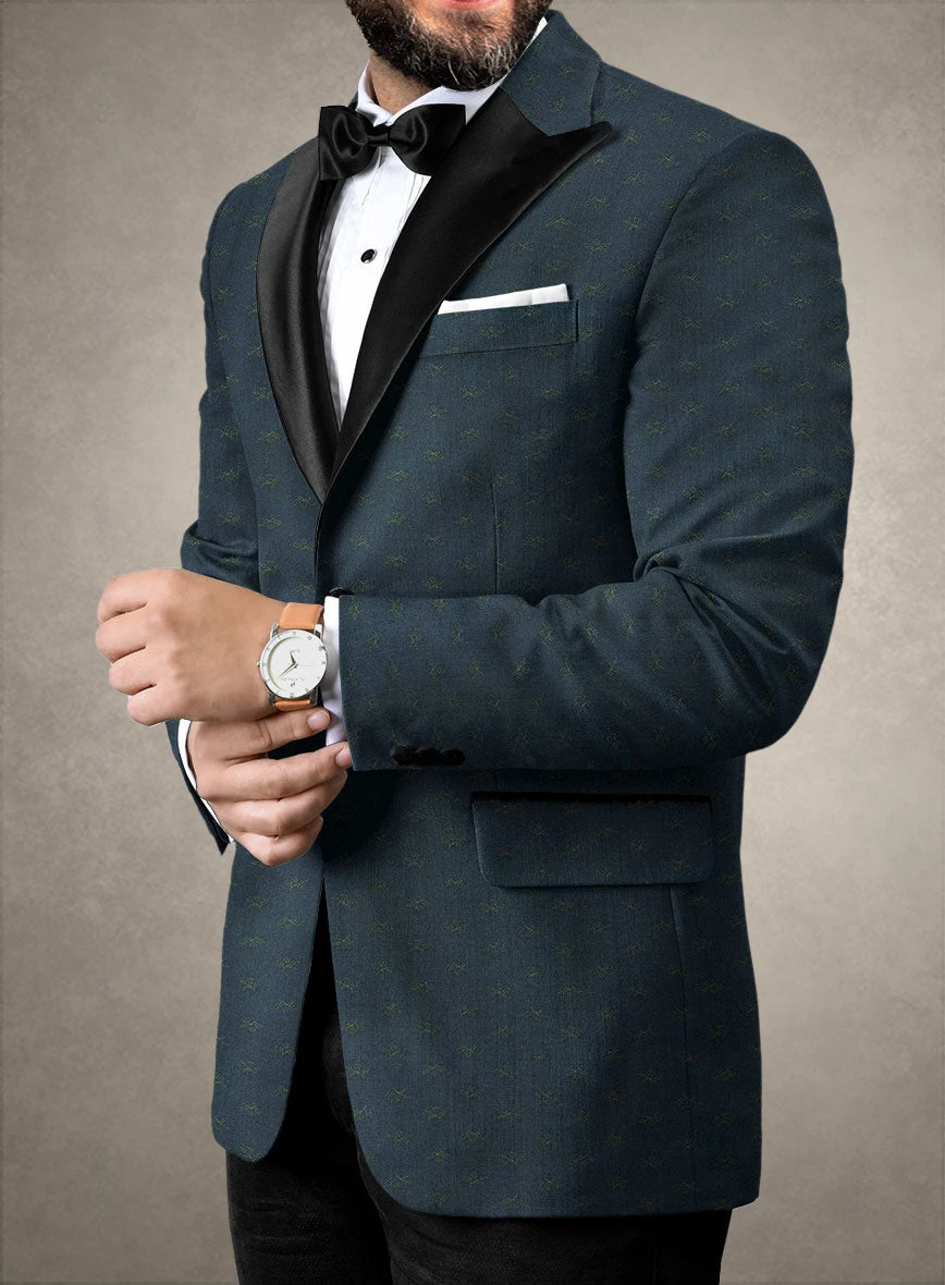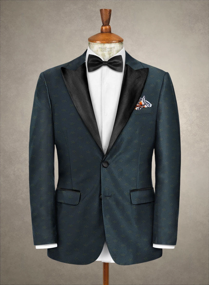 Step into the room wearing our Italian Silk Firni Tuxedo Jacket, the embodiment of sophistication that effortlessly commands attention.Tailored to perfection from a luxurious blend of polyester and viscose, this tuxedo jacket is a true masterpiece with its intricate and delicate flower pattern, woven into a rich green and blue backdrop which adds a touch of opulence to your attire and comfort to your build. So, whether you’re attending a gala event, a high-profile business meeting, or a special occasion, our Italian Silk Firni Tuxedo Jacket is your key to exuding unmatched style and leaving a lasting impression.
