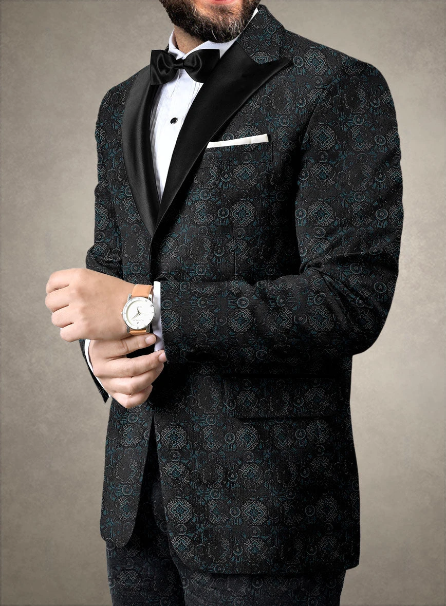 Establish the noble heritage of finesse with our Italian Ulisas Tuxedo Jacket. In addition, our jacket is made from a pure polyester material, which radiates a sleek, supple and decently coarse texture with a suzani pattern over the black and blue hues. Also, tailoring grants a peak sophistication with a stately appearance to the suit while bringing a current take to the classic accents by accompanying modern fits and providing great comfort will keep you on-trend. Lastly, no matter what occasion you have or what meeting you are attending, our magnificent jacket will ensure you’re prepared.