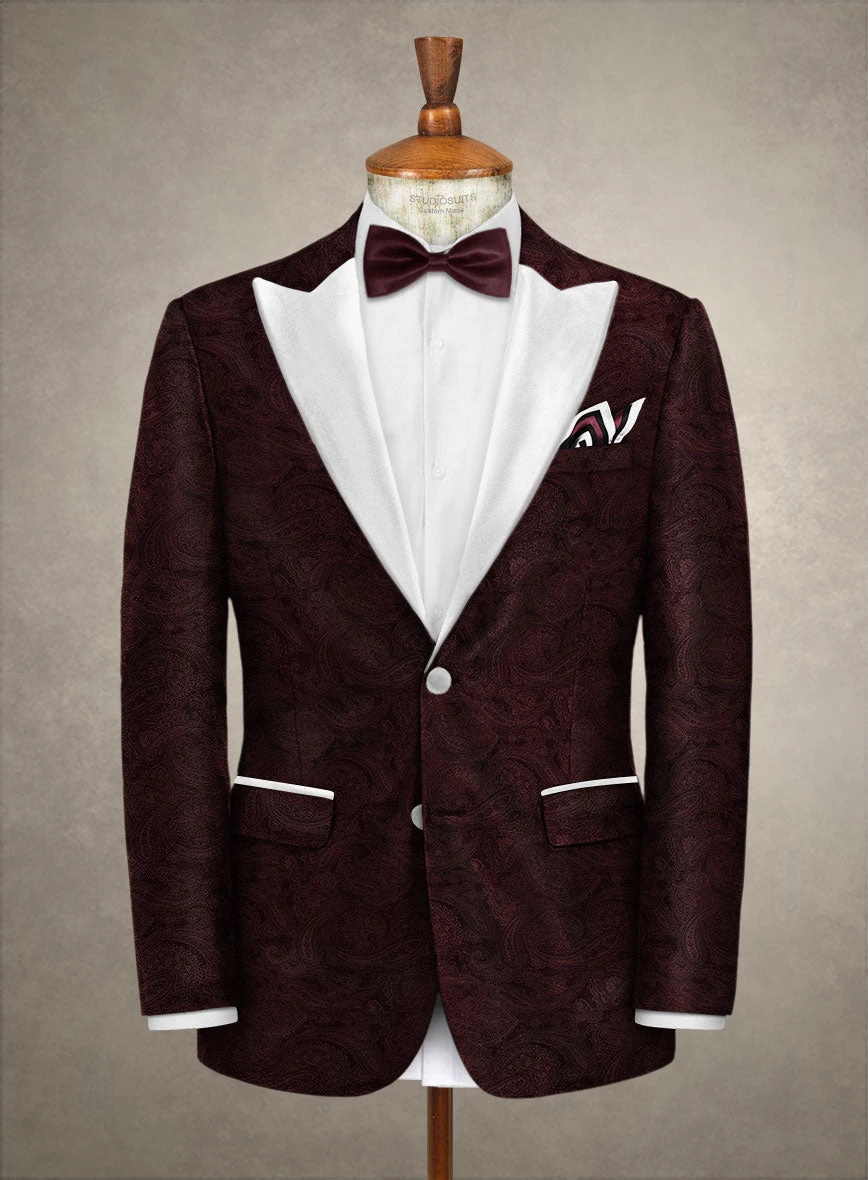 Ever been indecisive about your party look? Then our Italian Wool Scenzo Tuxedo Jacket will stand uniquely reputable for your cause. Tailored with a polyester and wool blend, our deluxe jacket is woven in a paisley wine shade pattern over a shiny texture, which feels smooth against your build, giving stylish exposure. So be modish in our stunning jacket that accentuates perfection to your dapper look.