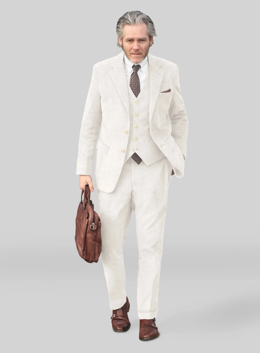 In a world where many millennials are drawn to the bold and flashy, there’s an undeniable charm in embracing simplicity. Introducing our Ivory Corduroy Suit – a true connoisseur of style and class. Handcrafted from pure cotton fabric, it provides velvety softness and wraps you in a warm embrace of sophistication. Its soothing ivory color palette with a solid texture offers the perfect canvas for your fashion expression. Whether it’s a romantic dinner, a swanky soirée, exchanging vows at a wedding, or even a day at the office, it effortlessly transcends occasions.