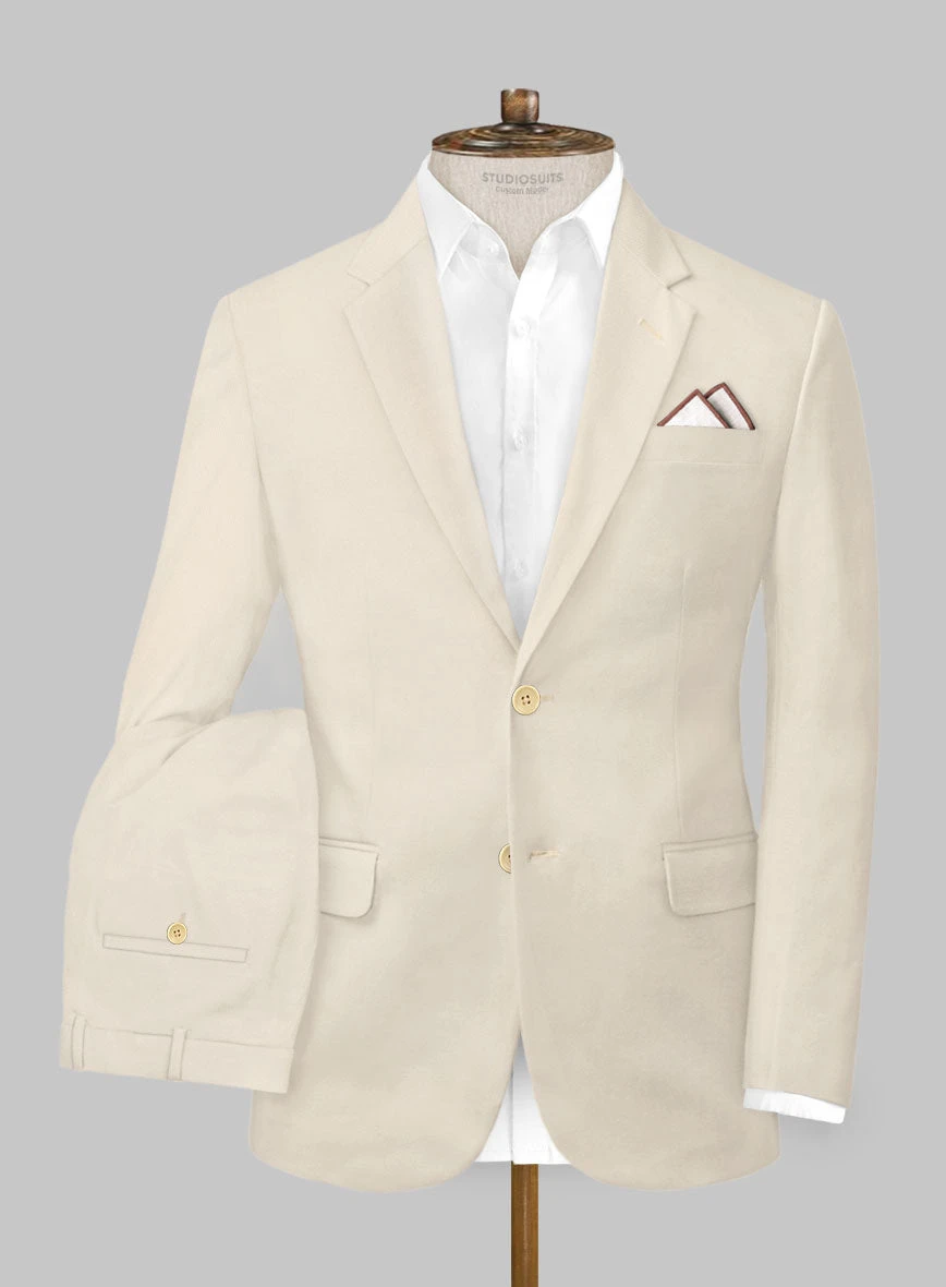Celebrate the season in a graceful, yet sharp Light Beige Feather Cotton Canvas Stretch suit. Crafted from cotton lycra blend, the light beige suit is made from a breakthrough stretch fabric that moves with you and keeps its shape. Make it sharp with a matching waistcoat, white shirt, brown tie and dark brown shoes.
