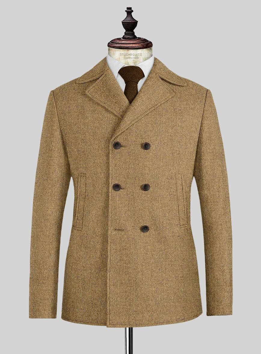 Blue and gray pea coats are staples in any man’s wardrobe, but they deserve a break sometimes too. That’s where our custom Naples Tuscan Sun Tweed Pea Coat comes in, commanding attractive attention and adding variety to your Monday through Friday rotation. Made of luxurious wool that looks as good as it feels, its plain weave and classic khaki hue help to diversify your pea coat collection. Whether you’re attending a wedding, a formal daytime outing, or just want to elevate your style, this pea coat is perfect for bringing sartorial refinement to your wardrobe.