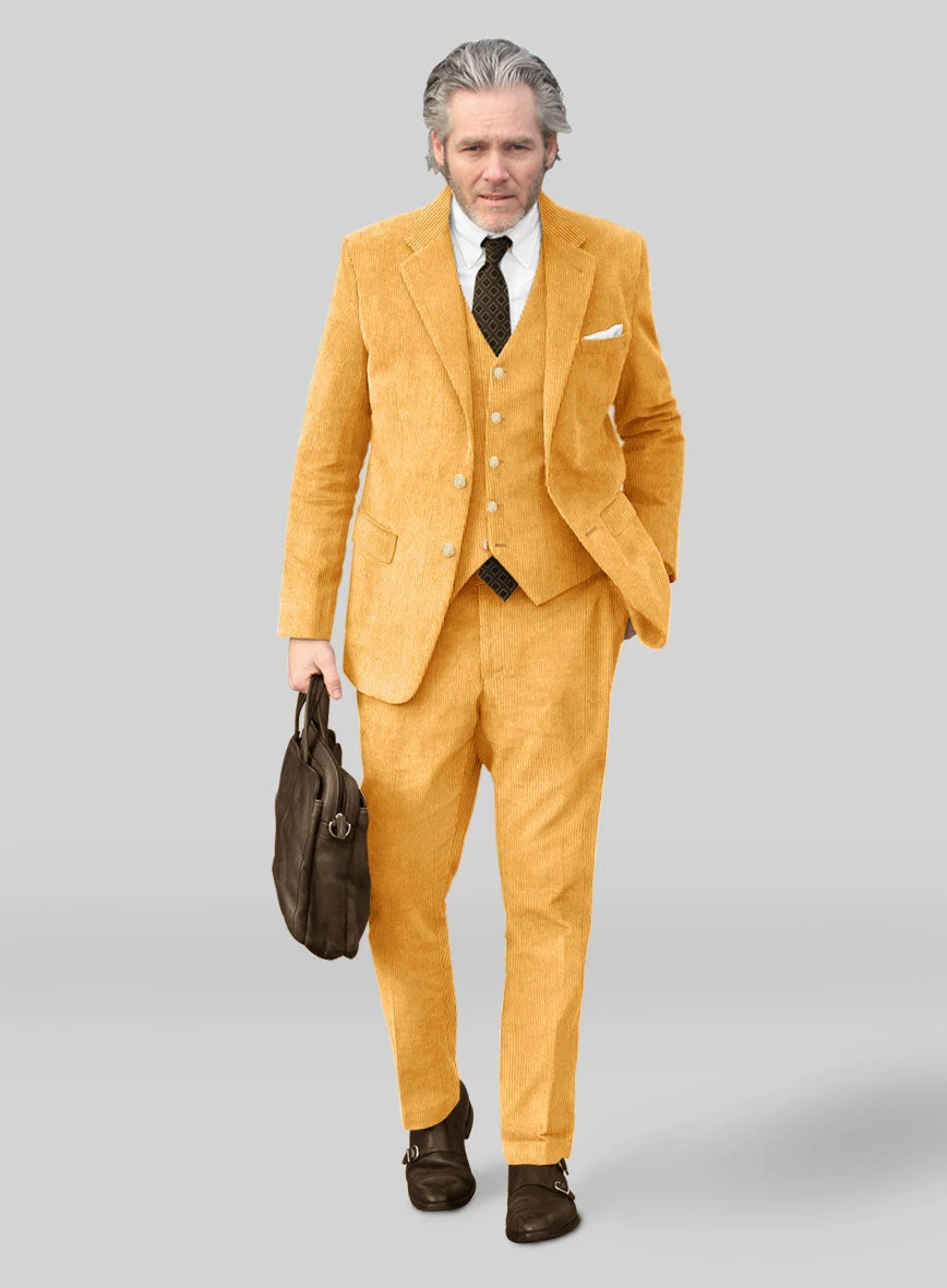 Vibrant in color, velvety to the touch, and bold in its guise, our Naples Yellow Corduroy Suit epitomizes your confidence and taste. Crafted entirely from robust cotton, it introduces intrigue and dimension to your ensemble while it’s luscious yellow hue and ribbed texture harmonize effortlessly, culminating in a contemporary and cohesive aesthetic that transcends passing fashion fads. Whether you’re adorning an elegant soirée, attending a high-profile business gathering, or simply redefining casual elegance, this suit asserts itself as your definitive choice.