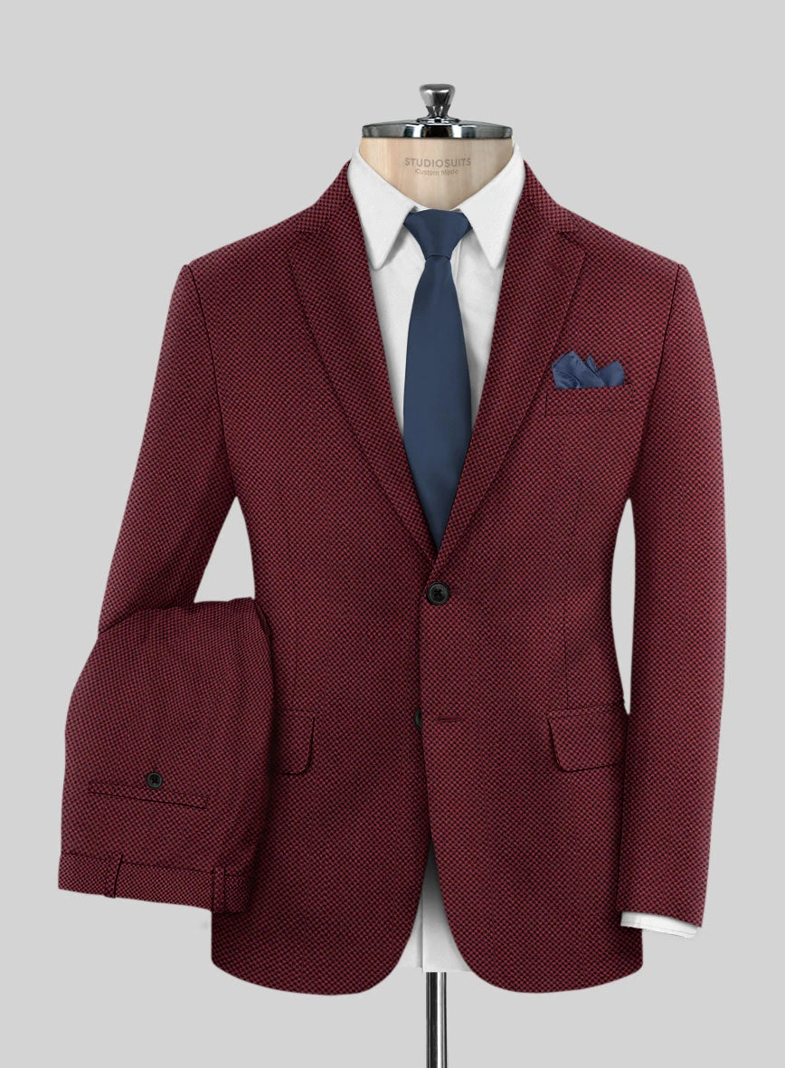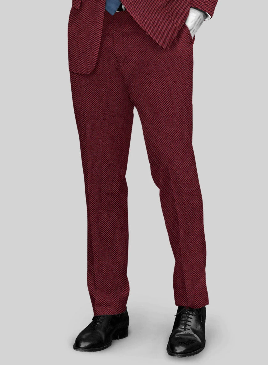Make wildly stylish and neat efforts in your prime stance with our incredible suit. Tailored with a wool blend, our Napolean Cherry Bomb Wool Suit has a smooth feel and unique crossed-checks pattern that falls easily within the comforts of your day, followed by a crisp red shade that brings classiness to your ensemble. So inject your day-to-day styling routine with this selective piece guaranteed to put a modern spin into your looks.