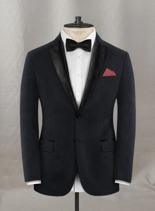 Take your look to the next level with our exceptionally tailored Napolean Dark Blue Herringbone Wool Tuxedo Suit. Crafted from a wool blend, our suit is filled with more easiness and softness, creating a memorable look and feel for the man of distinction. Dress up at any party or at a wedding with our blue suit and keep yourself sharp all day long.