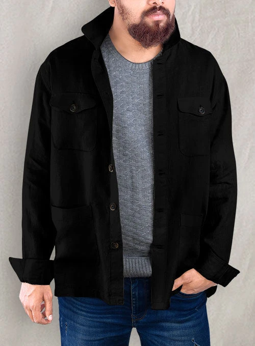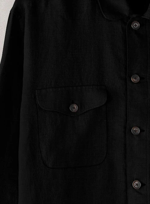 Our Safari Pure Black Linen Overshirt is specially designed from 100% linen, an essential piece for sharp dressing and casual affairs alike. The two flap pockets on the chest offer a classic look, while the weave adds a touch of texture to any outfit.