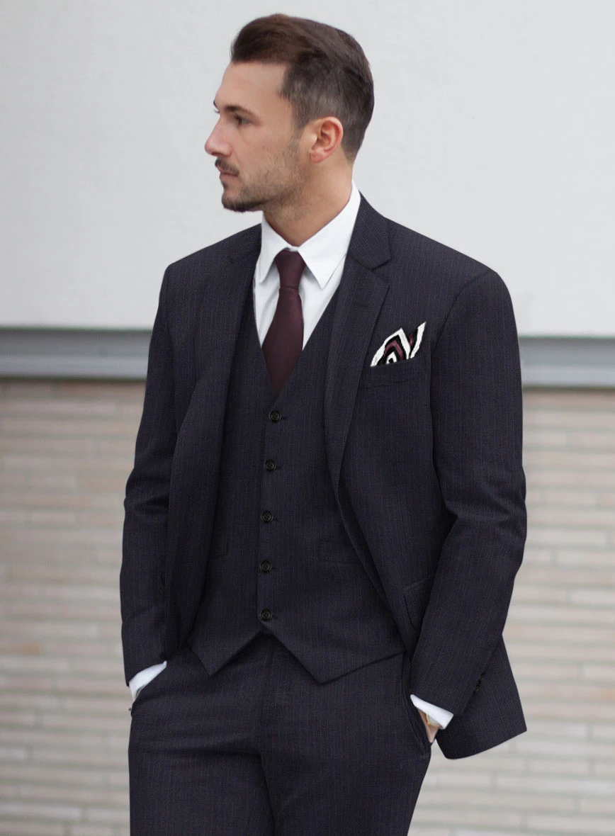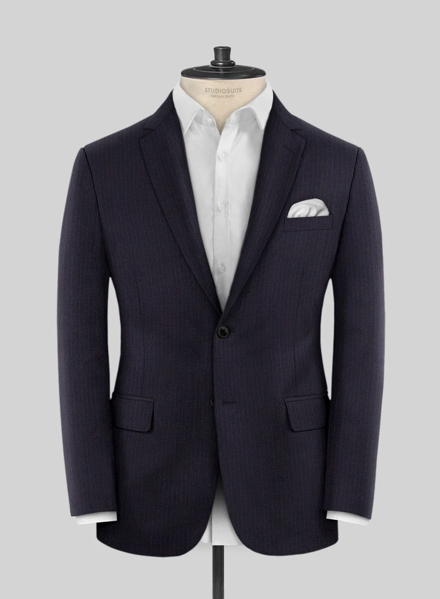 Elevate your formal wardrobe with our timeless Scabal Hernal Stripe Blue Wool Jacket, designed for the modern man with a touch of intrigue. Constructed from premium wool material, this jacket features bold red vertical stripes on a rich blue base, exuding refined elegance. Whether you’re attending a formal reception or any occasion, make this your go-to choice for a truly captivating look.