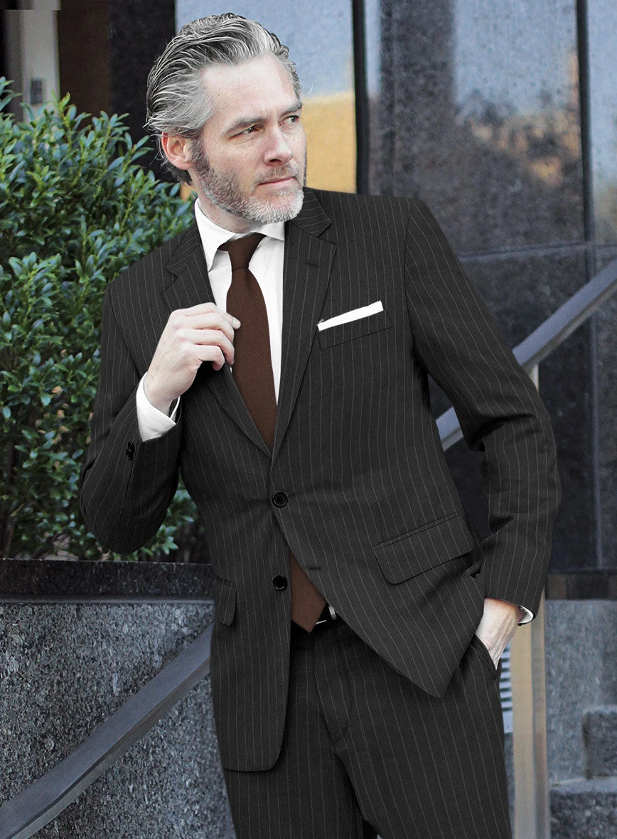 - Scabal Ysido Stripe Charcoal Wool Fabric