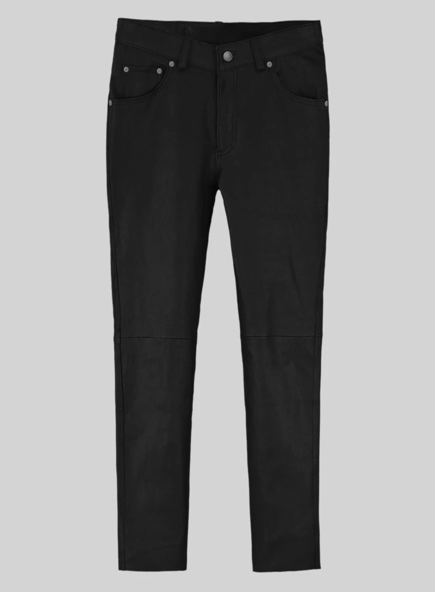 Welcome to your new fashion staple – our chic Stretch Black Leather Jeans. Crafted with pure napa leather, these trendy jeans will elevate your everyday wardrobe.
