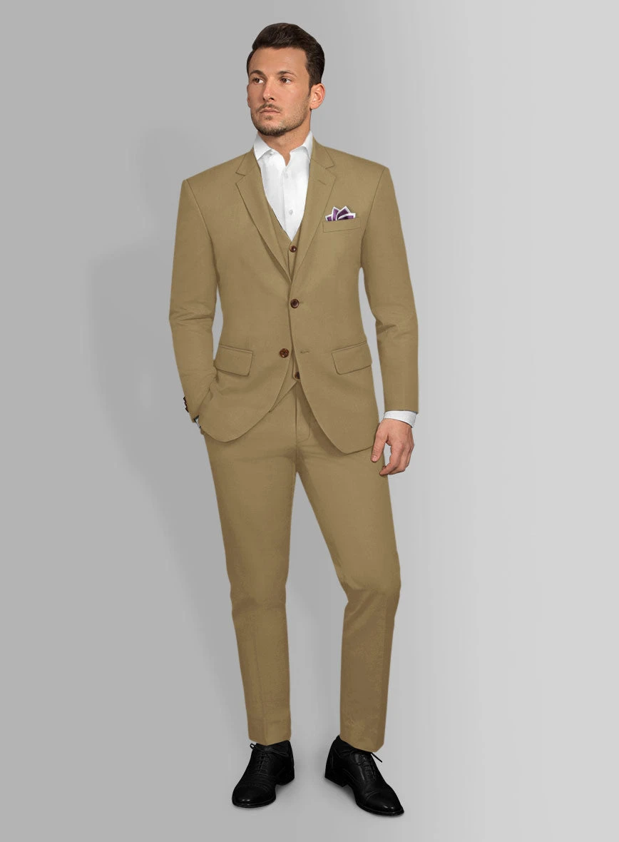 Our Tan Feather Cotton Canvas Stretch Suit will let you dress up like a champion who does not settle anything less than great.