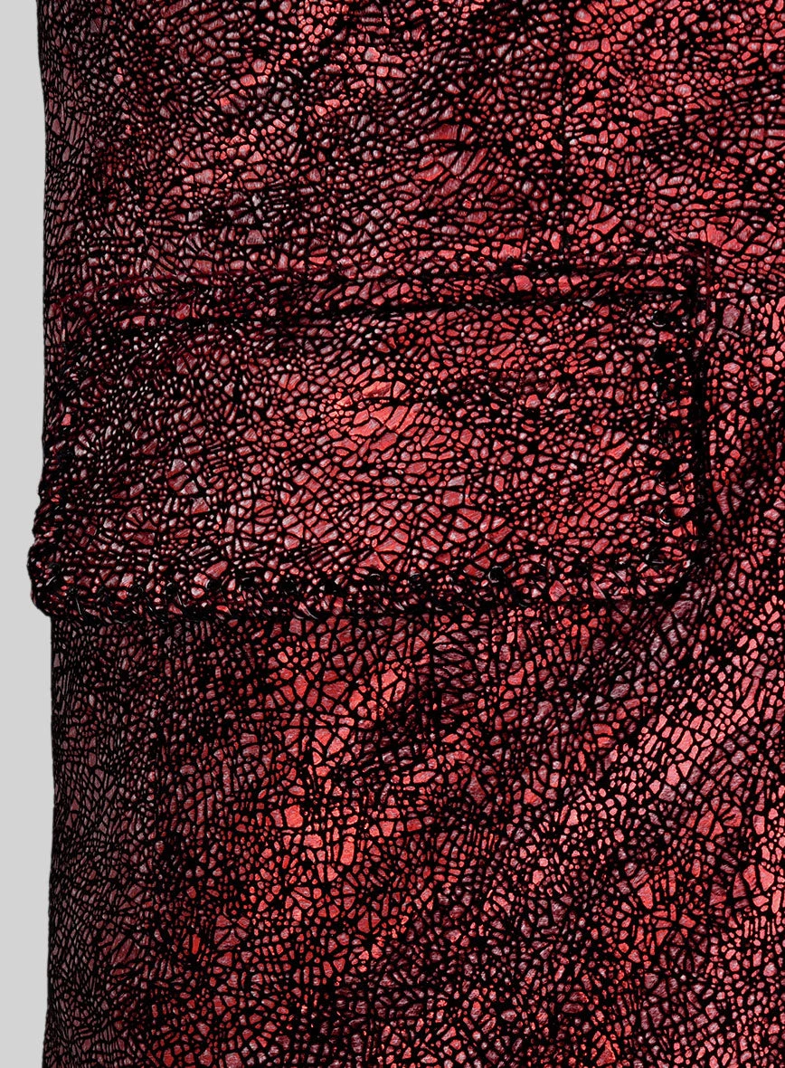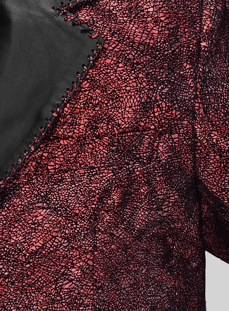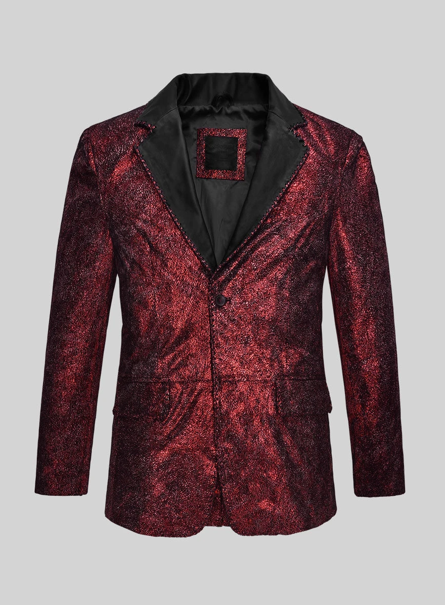 Indulge in the allure of our Twilight Red Medieval Tuxedo Leather Blazer, a garment that embodies timeless charm and sophistication. This resplendent twilight red hue is a statement in itself, effortlessly capturing attention and making a profound fashion statement.