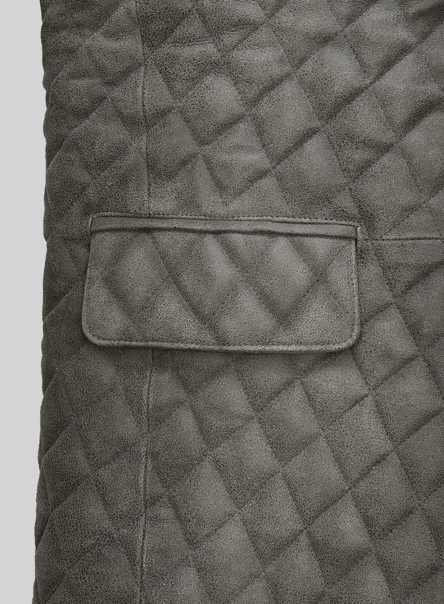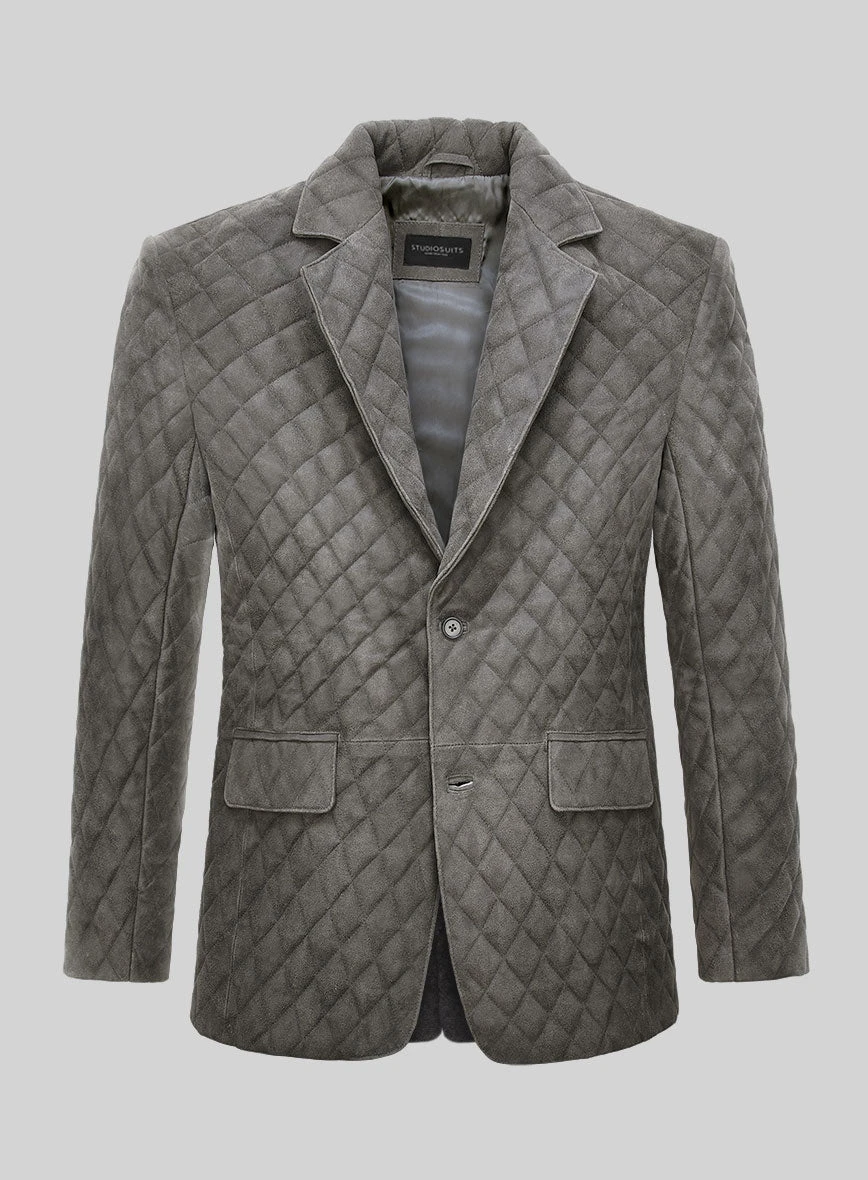 The gray quilted blazer crafted from genuine soft and premium napa leather for a luxurious finish, fuses classic style with unrivalled comfort.
