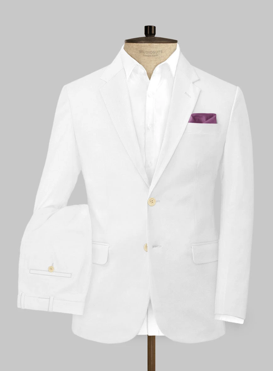 The key to dressing like an elegant gentleman is to keep it simply classic and what better way to do that than with our White Stretch Chino Suit. Crafted from cotton lycra blend, the suit features a splendid white color that is a perfect option when it comes to creating a chic and statement making look. The complete smart suit will step up your game with added stretch for functionality.
